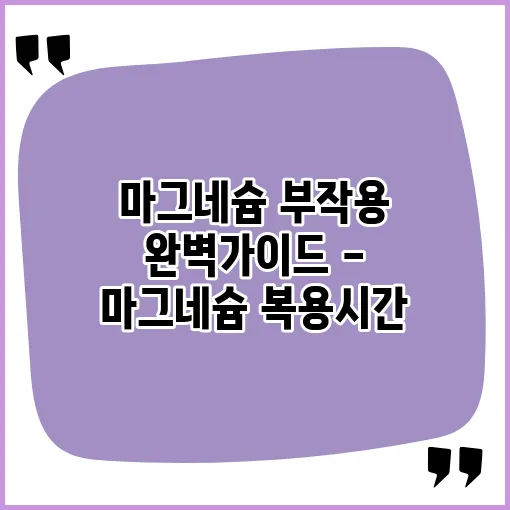 마그네슘은 많은 사람들이 건강을 위해 이를 보조제로 섭취하고 있습니다. 그러나 마그네슘의 효능과 부작용에 대해 올바르게 알아두는 것은 매우 중요합니다. 이번 글에서는 마그네슘의 복용시간, 효능, 과다 복용 시 나타날 수 있는 부작용 등을 자세히 살펴보겠습니다. 이를 통해 독자 여러분이 마그네슘을 보다 건강하게 활용할 수 있도록 도와드릴 것입니다.마그네슘의 역할과 효능 마그네슘은 우리 몸에서 다양한 중요한 역할을 수행하는 필수 미네랄입니다. 우선, 마그네슘의 효능을 살펴보면 아래와 같은 여러 가지가 있습니다.근육과 신경 기능 유지 마그네슘은 근육 수축과 이완에 필수적입니다. 이는 신경 자극 전달에도 영향을 미칩니다. 예를 들어, 운동 후 근육 경련이 느껴질 때 마그네슘이 부족할 수 있습니다. 따라서 마..